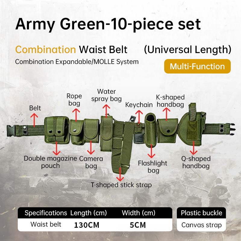 10-in-1 Tactical Holster & Flashlight Pouch Set, MOLLE Compatible Duty Belt System