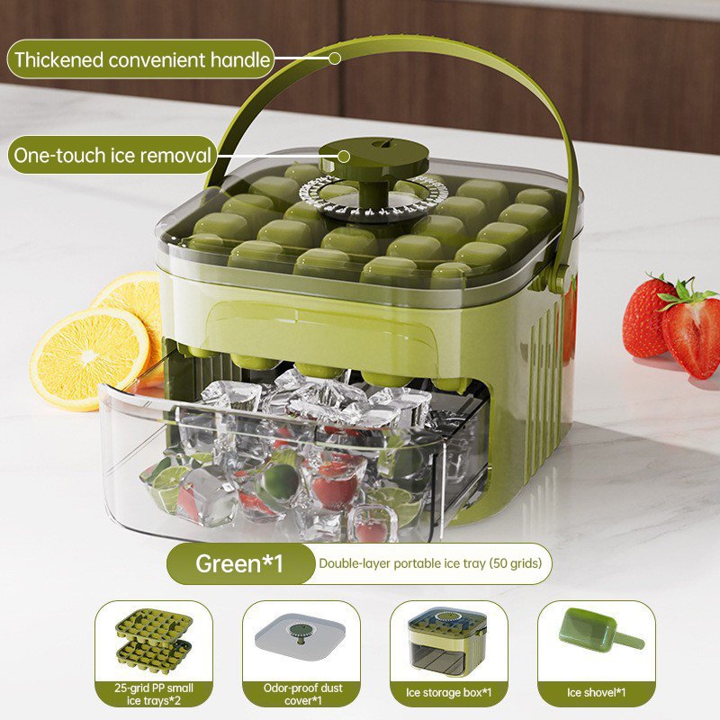 50-grid ice maker with new large capacity – household food-grade plastic double-layer ice storage barrel & ice ball mold set