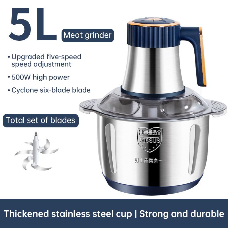 Electric Meat Grinders, 5L Food Processor, Stainless Steel Multifunctional Vegetable Slicer, Kitchen Chopper & Mixer