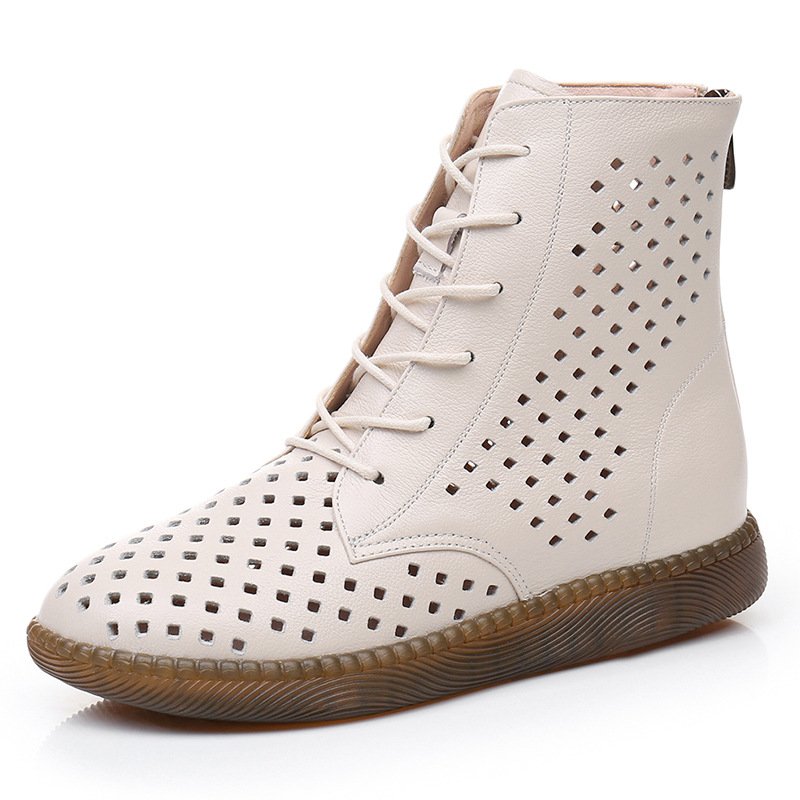 Flat bottomed soft leather perforated boots versatile oversized retro hollowed out Martin boots for women