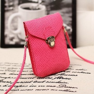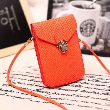 Fluorescence Colors Women Mobile Phone Bags Fashion Small Change Purse Female Woven Buckle Shoulder Bags Mini Messenger Bag