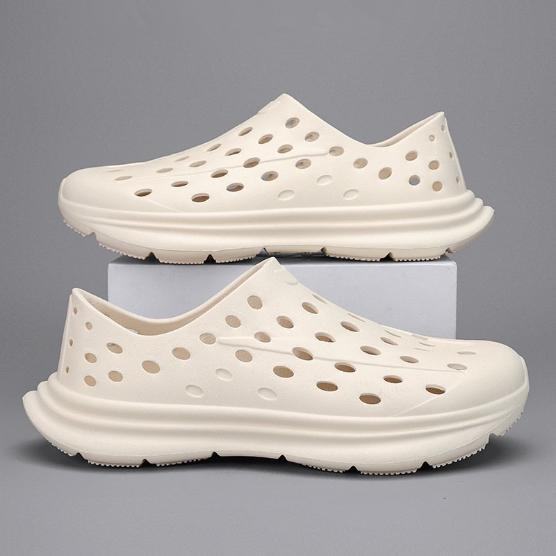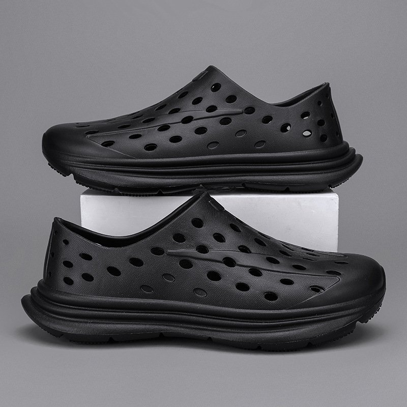 Hollow hole shoes for men one foot sandals fashionable and casual soft soled toe wrapped beach shoes