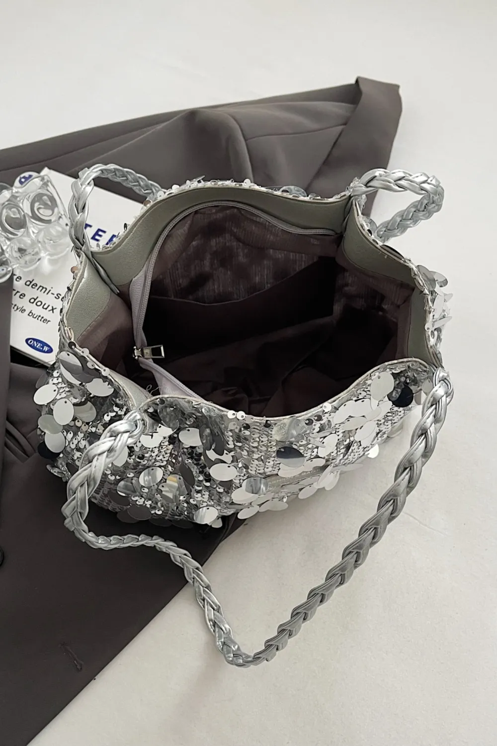 Sequin Braided Strap Shoulder Bag