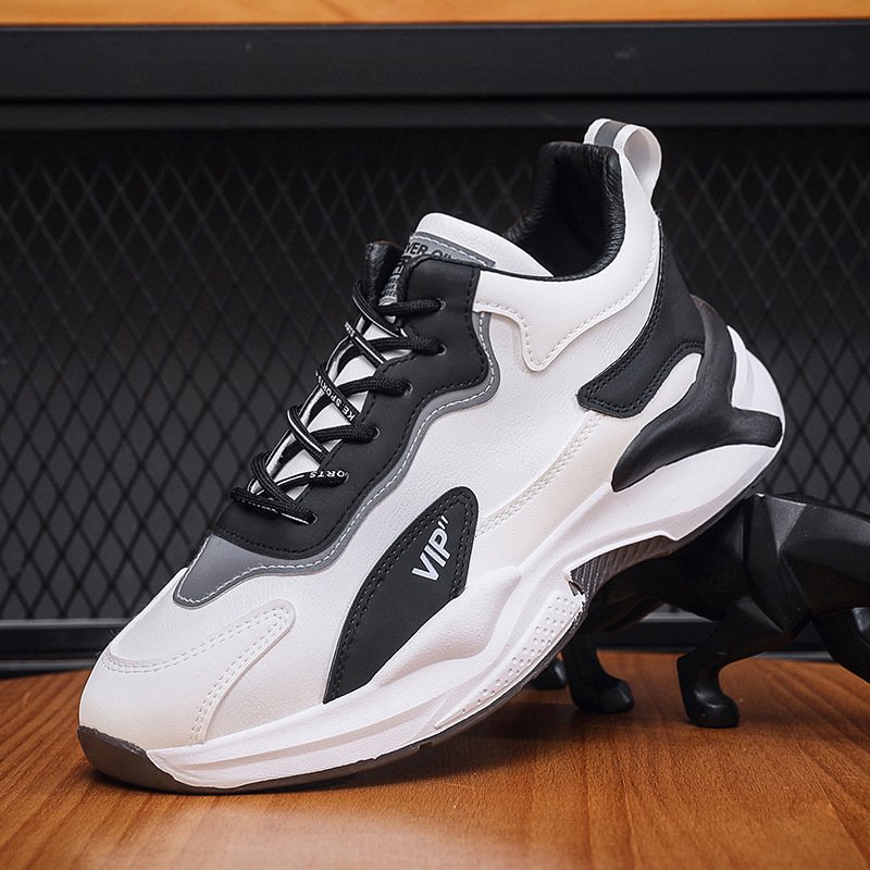 Versatile casual Korean version men’s trendy white shoes, sports thick soled anti slip running dad shoes